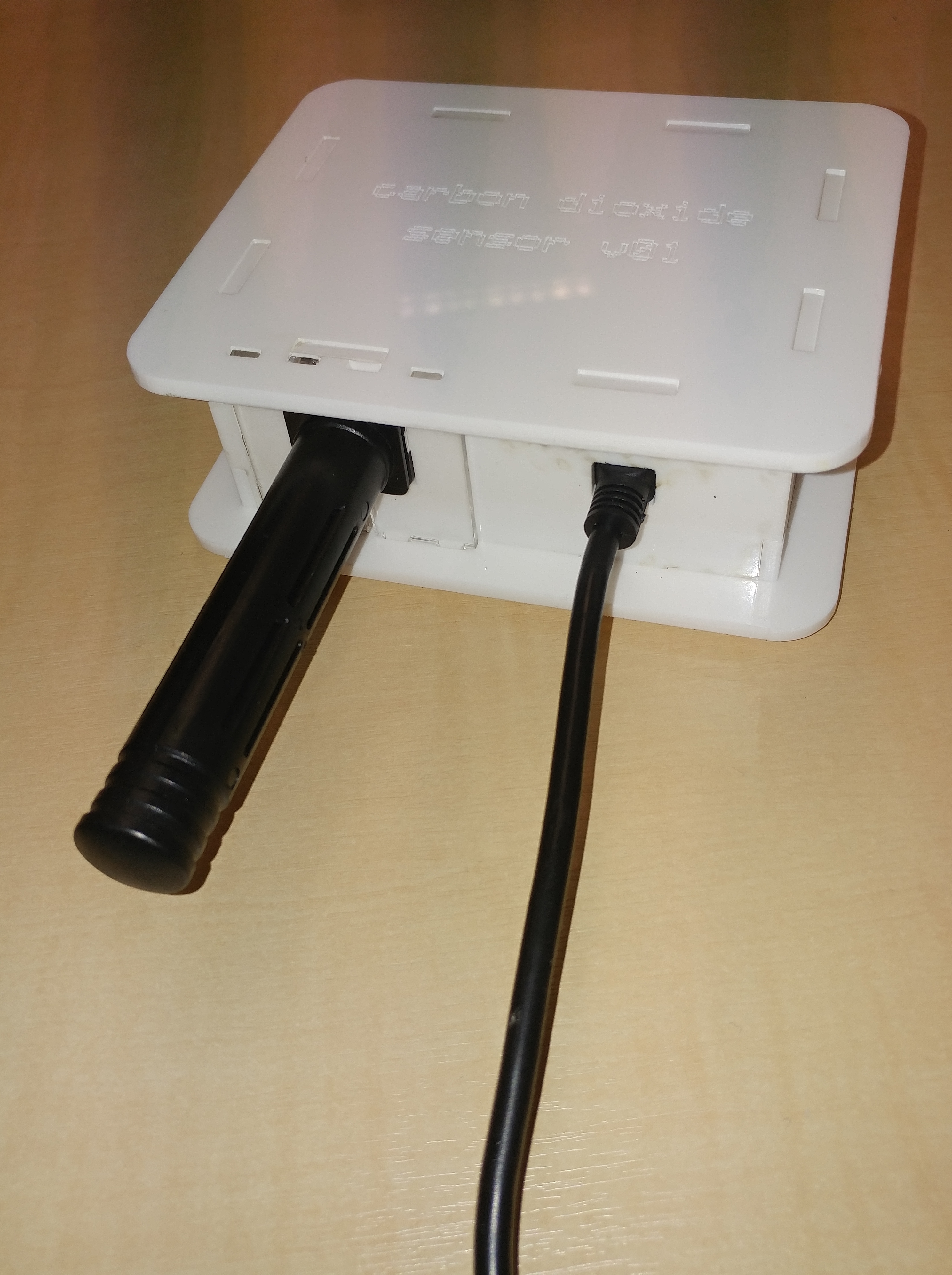 The next task was to make an enclosure to protect the sensor, logic boards and delicate wiring. A couple of evenings spent playing with OpenSCAD yielded an alpha version which I cut on the lasercutter today and tried out. I had to correct a few mistakes in the design but ultimately produced this: