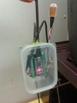 I would have taken a picture of the two boards mounted inside but the lasercut bits fitted together so snugly I didn’t want to try and separate them again in case something broke. You can see the lights of the Arduino inside through the ventilation holes 🙂
